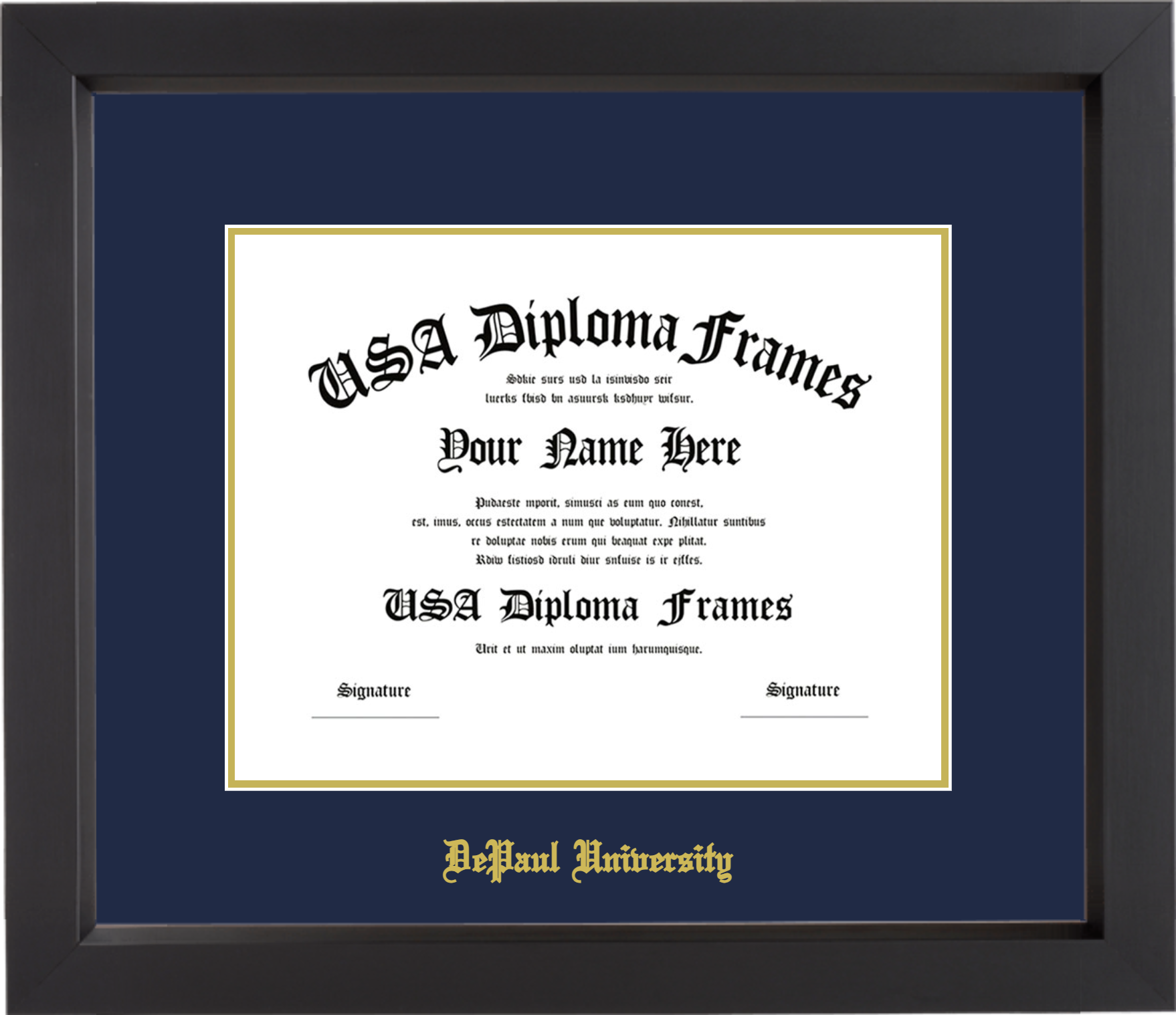 DePaul University – Single Horizontal Document ( Bachelors/Masters ) – Black Matte – Navy Mat – Gold Accent Mat – With Gold Embossing (DePaul University)