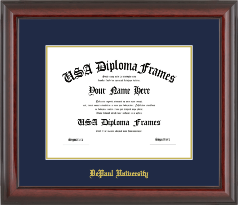 Want to explore more styles? Browse our full range of diploma frame layouts, or visit the DePaul University to view options available for your school. Looking for a fully personalized design? Try our custom Frame Builder and create a frame that’s uniquely yours.