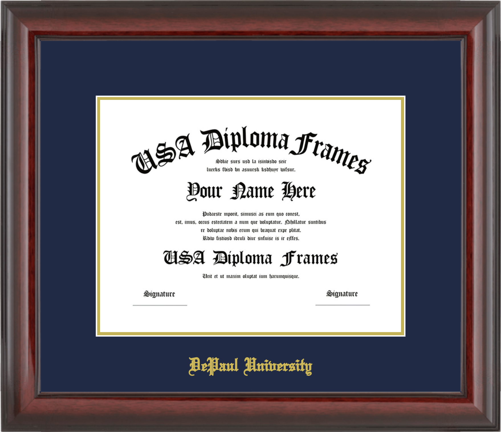 DePaul University – Single Horizontal Document ( Bachelors/Masters ) – Cherry Mahogany Glossy – Navy Mat – Gold Accent Mat – With Gold Embossing (DePaul University)