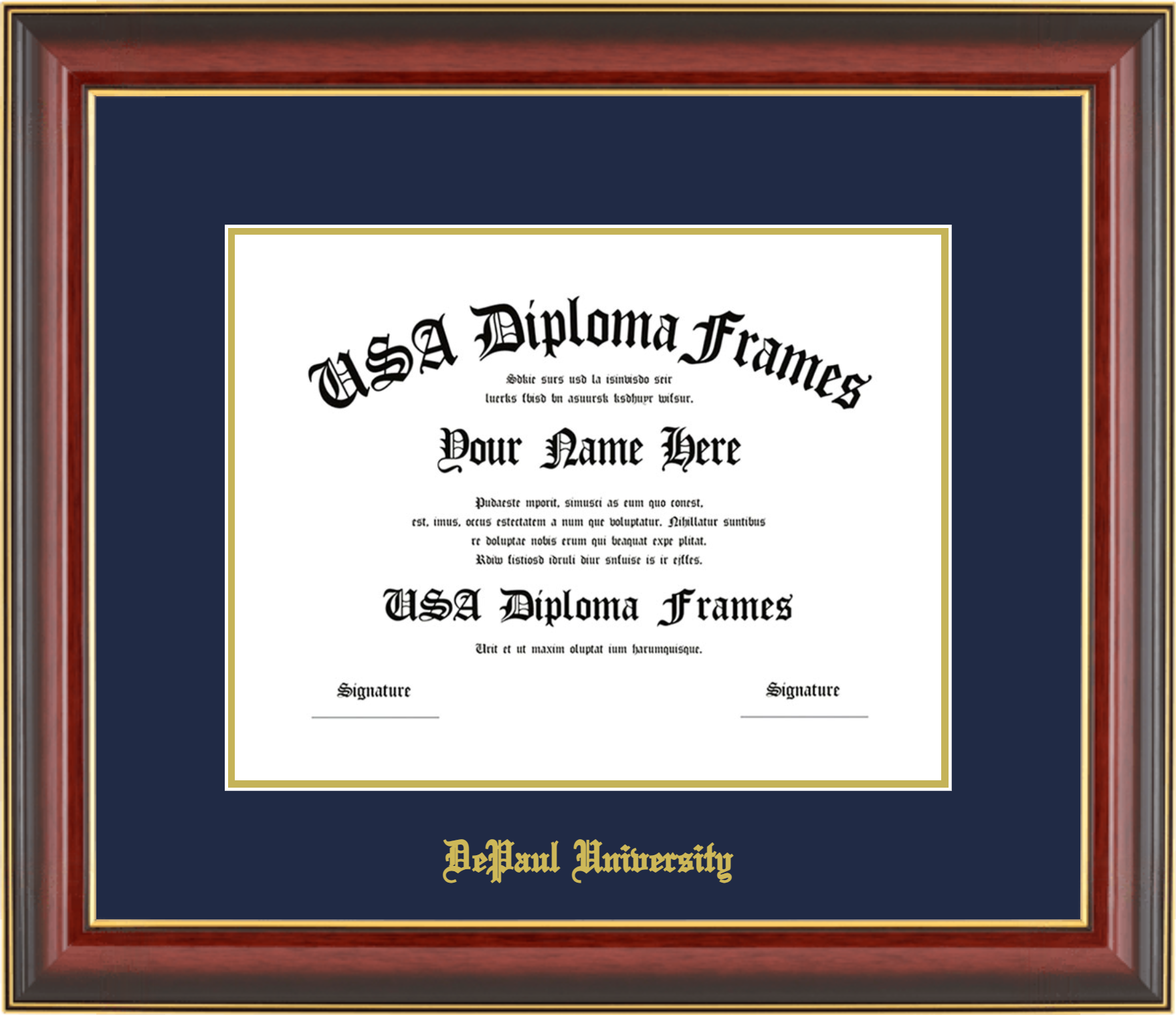 DePaul University – Single Horizontal Document ( Bachelors/Masters ) – Cherry Mahogany Gold Trim Glossy – Navy Mat – Gold Accent Mat – With Gold Embossing (DePaul University)