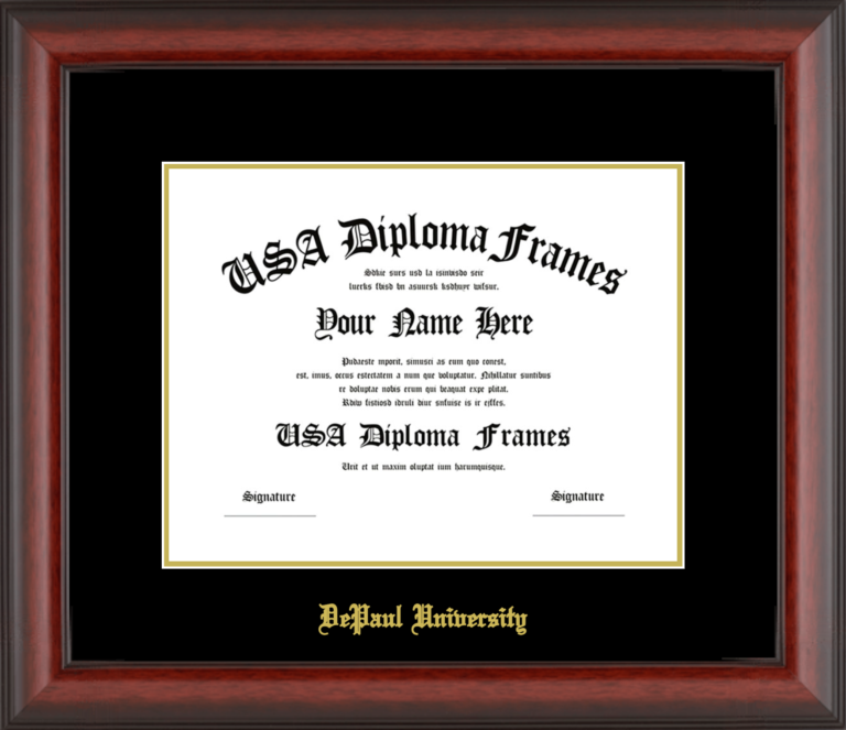 DePaul University Diploma Frame – Cherry Mahogany Matte – Black and Gold Mat