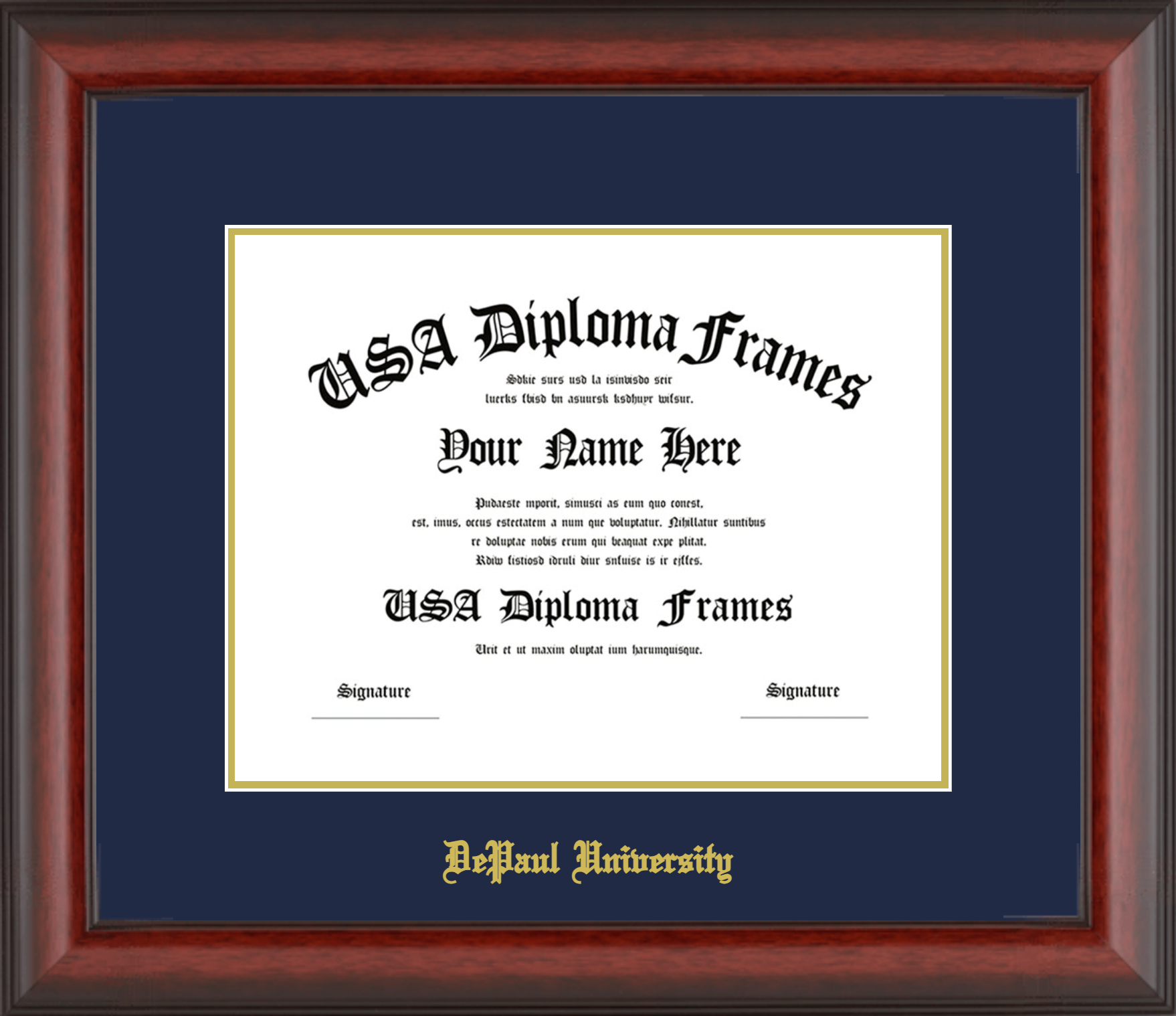 DePaul University – Single Horizontal Document ( Bachelors/Masters ) – Cherry Mahogany Matte – Navy Mat – Gold Accent Mat – With Gold Embossing (DePaul University)
