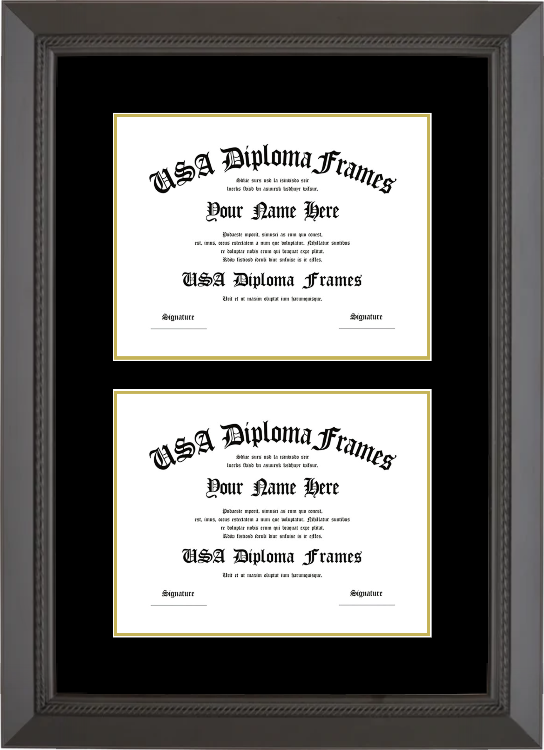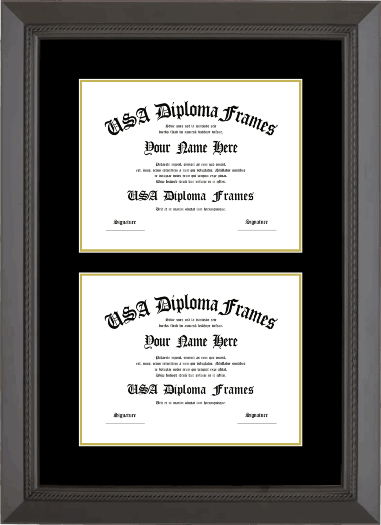 Double Diploma Frame – Black Rope – Black and Gold Mat – 8.5 x 11 Diplomas