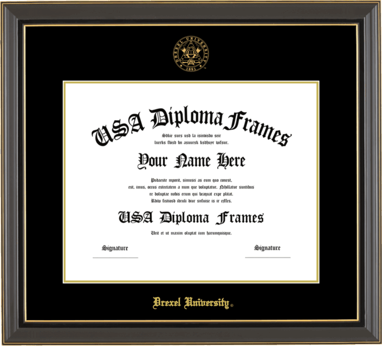 Drexel University – Single Horizontal Document ( Diploma ) – Black Gold Trim Glossy – Black Mat – Gold Accent Mat – With Seal(University Seal Gold) – With Gold Embossing (Drexel University)