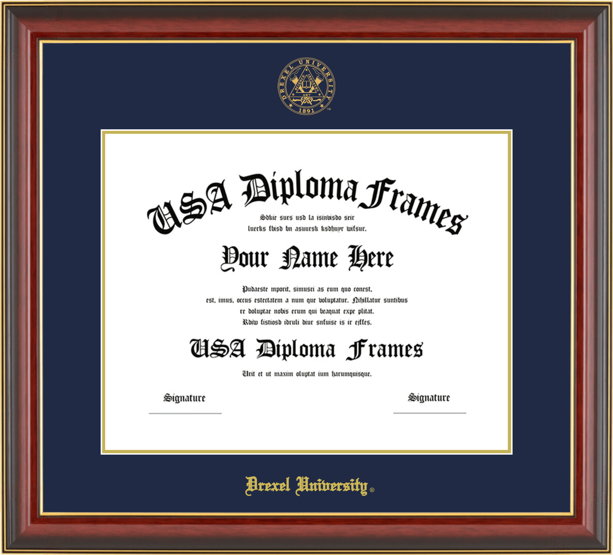 Drexel University – Single Horizontal Document ( Diploma ) – Cherry Mahogany Gold Trim Glossy – Navy Mat – Gold Accent Mat – With Seal(University Seal Gold) – With Gold Embossing (Drexel University)
