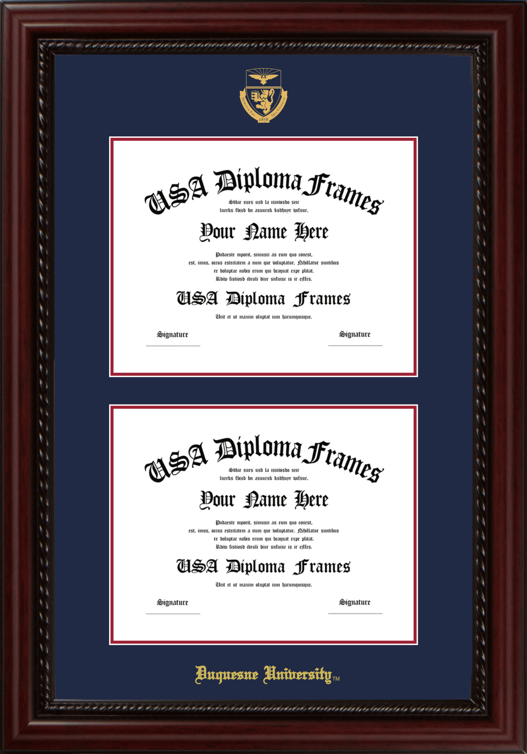 Want to explore more styles? Browse our full range of diploma frame layouts, or visit the Duquesne University to view options available for your school. Looking for a fully personalized design? Try our custom Frame Builder and create a frame that’s uniquely yours.