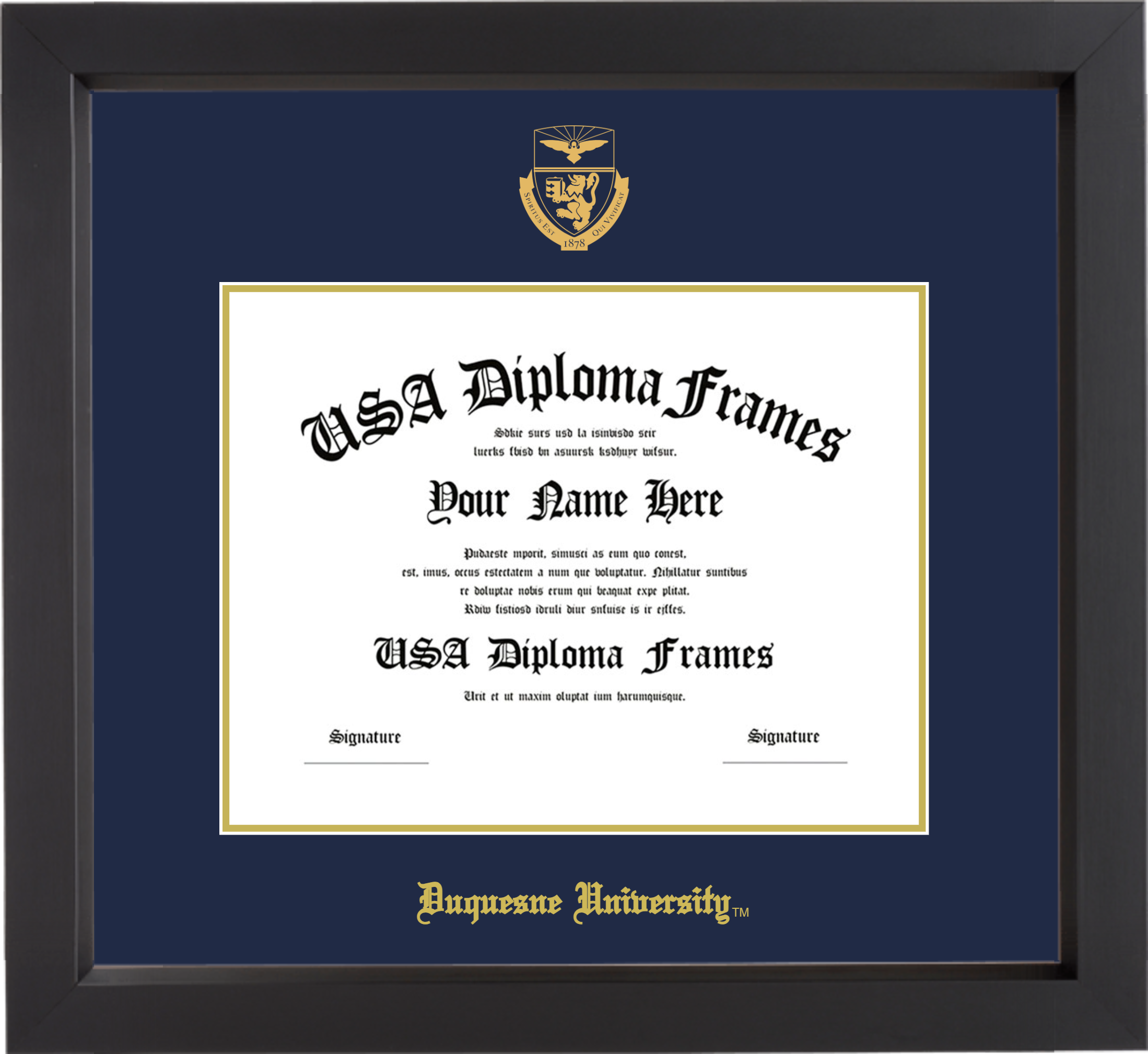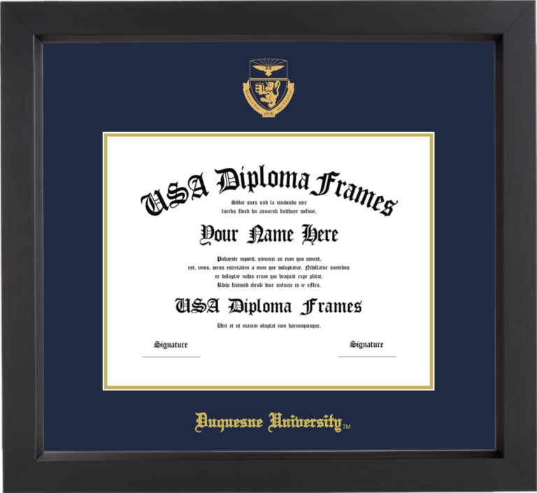 Want to explore more styles? Browse our full range of diploma frame layouts, or visit the Duquesne University to view options available for your school. Looking for a fully personalized design? Try our custom Frame Builder and create a frame that’s uniquely yours.