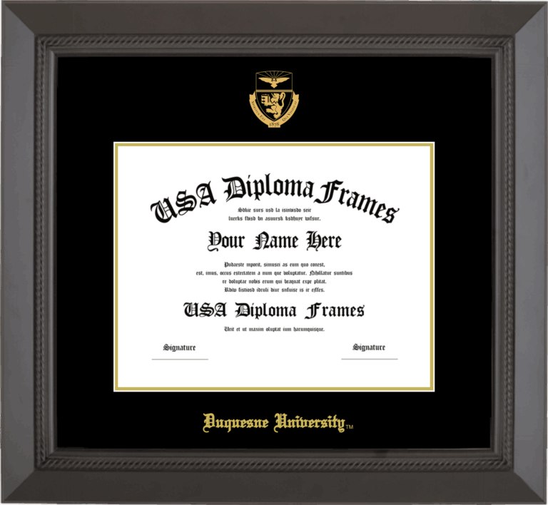 Want to explore more styles? Browse our full range of diploma frame layouts, or visit the Duquesne University to view options available for your school. Looking for a fully personalized design? Try our custom Frame Builder and create a frame that’s uniquely yours.