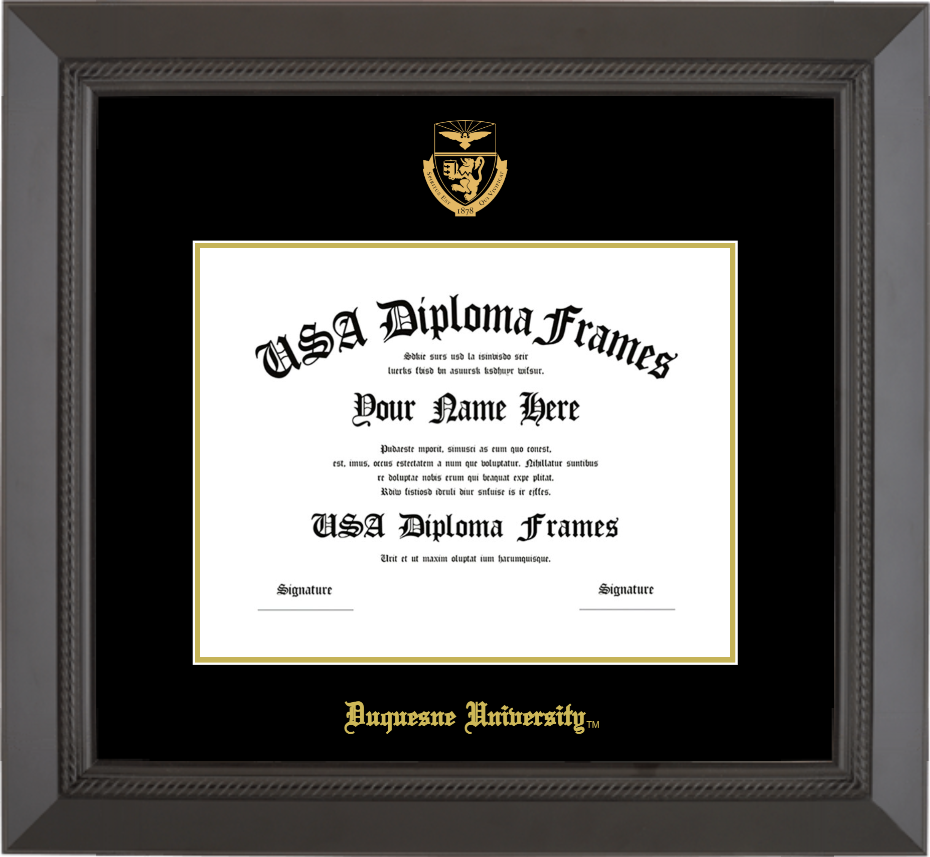 Duquesne University – Single Horizontal Document ( Bachelors/Masters ) – Black Rope – Black Mat – Gold Accent Mat – With Seal(University Seal Gold) – With Gold Embossing (Duquesne University)
