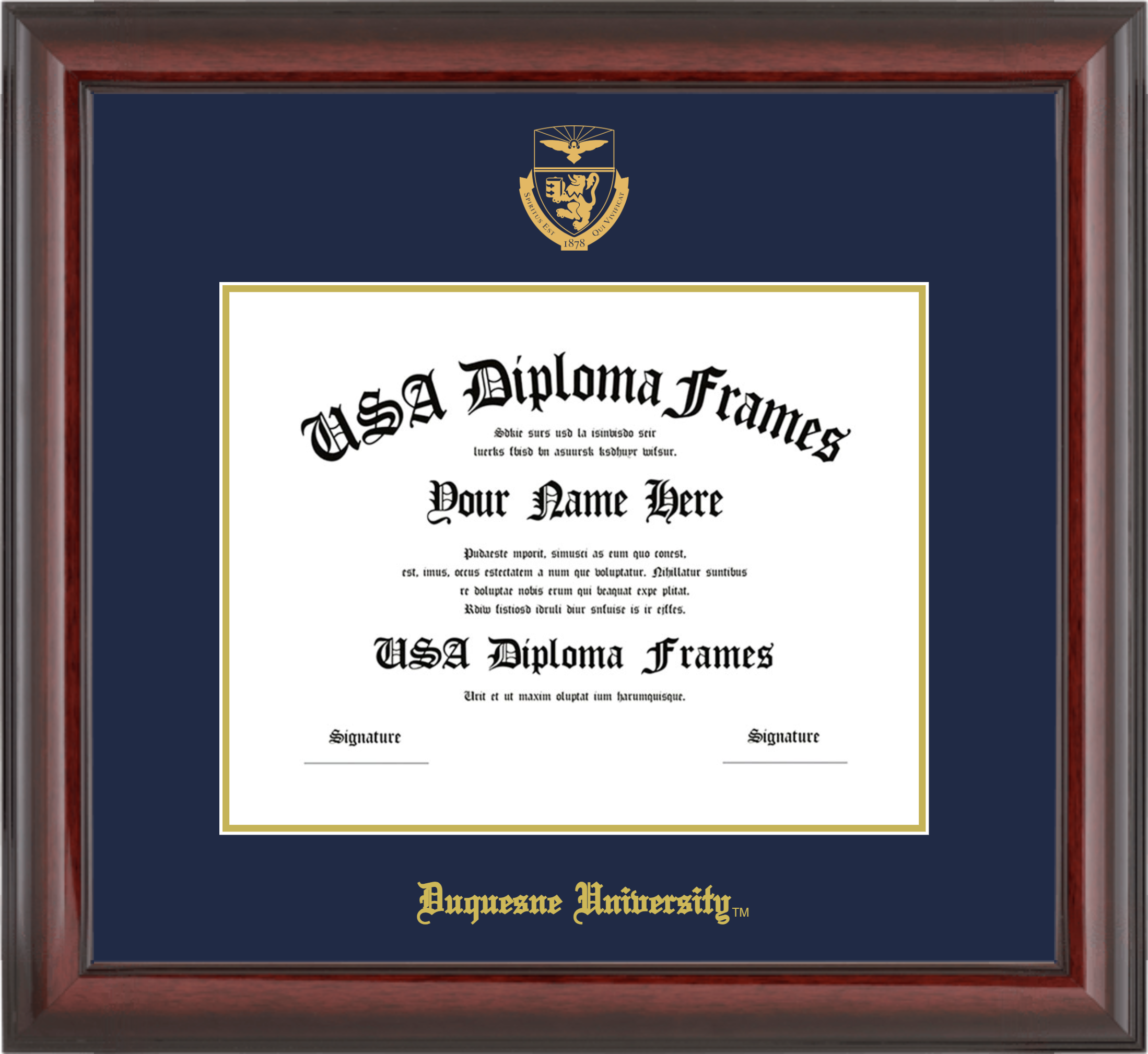 Duquesne University – Single Horizontal Document ( Bachelors/Masters ) – Cherry Mahogany Glossy – Navy Mat – Gold Accent Mat – With Seal(University Seal Gold) – With Gold Embossing (Duquesne University)