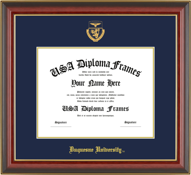 Want to explore more styles? Browse our full range of diploma frame layouts, or visit the Duquesne University to view options available for your school. Looking for a fully personalized design? Try our custom Frame Builder and create a frame that’s uniquely yours.