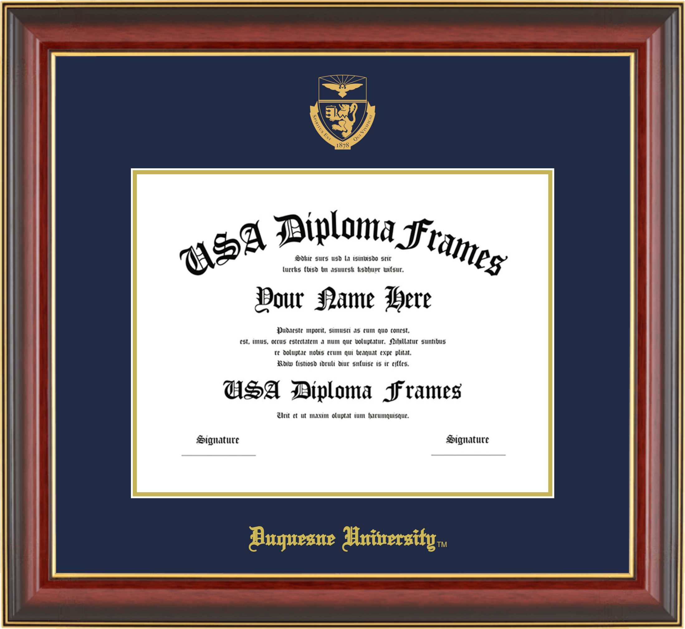 Duquesne University – Single Horizontal Document ( Bachelors/Masters ) – Cherry Mahogany Gold Trim Glossy – Navy Mat – Gold Accent Mat – With Seal(University Seal Gold) – With Gold Embossing (Duquesne University)