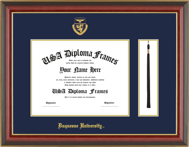 Want to explore more styles? Browse our full range of diploma frame layouts, or visit the Duquesne University to view options available for your school. Looking for a fully personalized design? Try our custom Frame Builder and create a frame that’s uniquely yours.