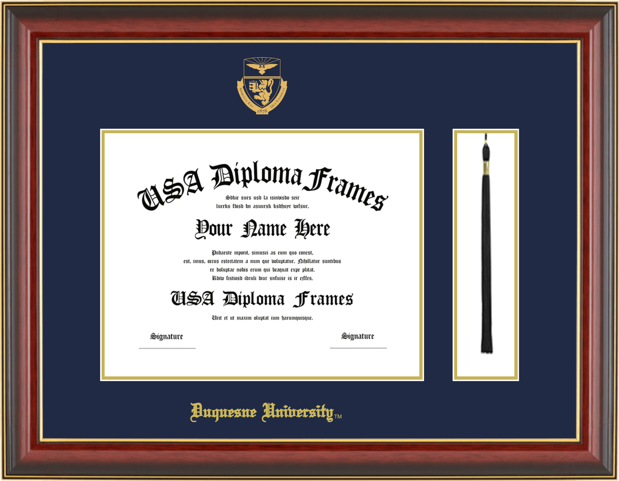 Duquesne University – Single Horizontal Document ( Bachelors/Masters ) – Cherry Mahogany Gold Trim Glossy – Navy Mat – Gold Accent Mat – With Tassel(Default) – With Seal(University Seal Gold) – With Gold Embossing (Duquesne University)