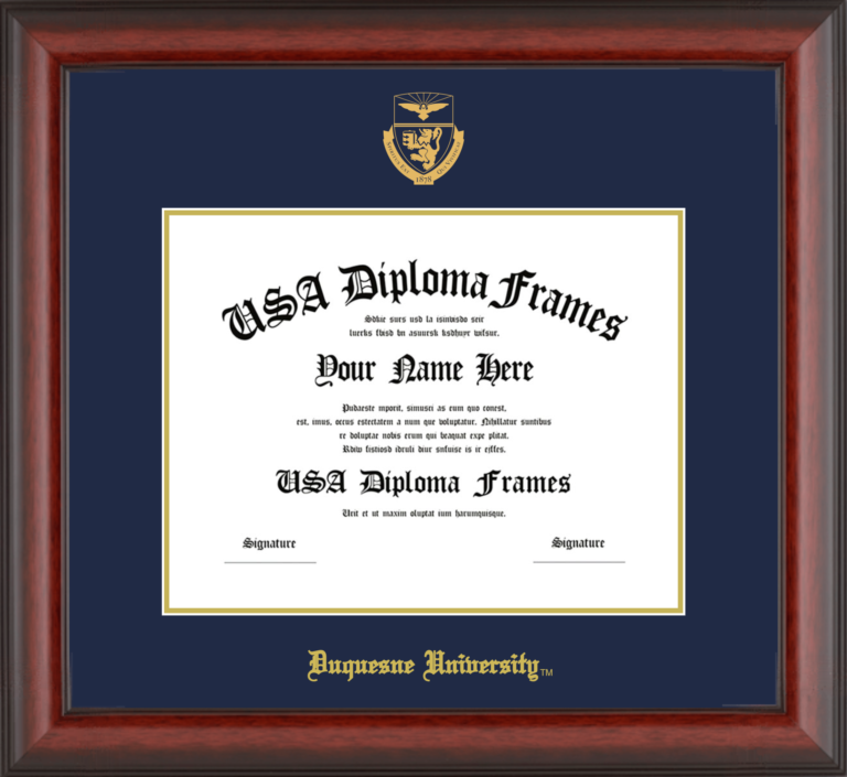 Want to explore more styles? Browse our full range of diploma frame layouts, or visit the Duquesne University to view options available for your school. Looking for a fully personalized design? Try our custom Frame Builder and create a frame that’s uniquely yours.