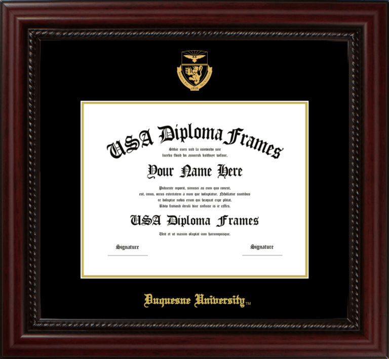 Want to explore more styles? Browse our full range of diploma frame layouts, or visit the Duquesne University to view options available for your school. Looking for a fully personalized design? Try our custom Frame Builder and create a frame that’s uniquely yours.