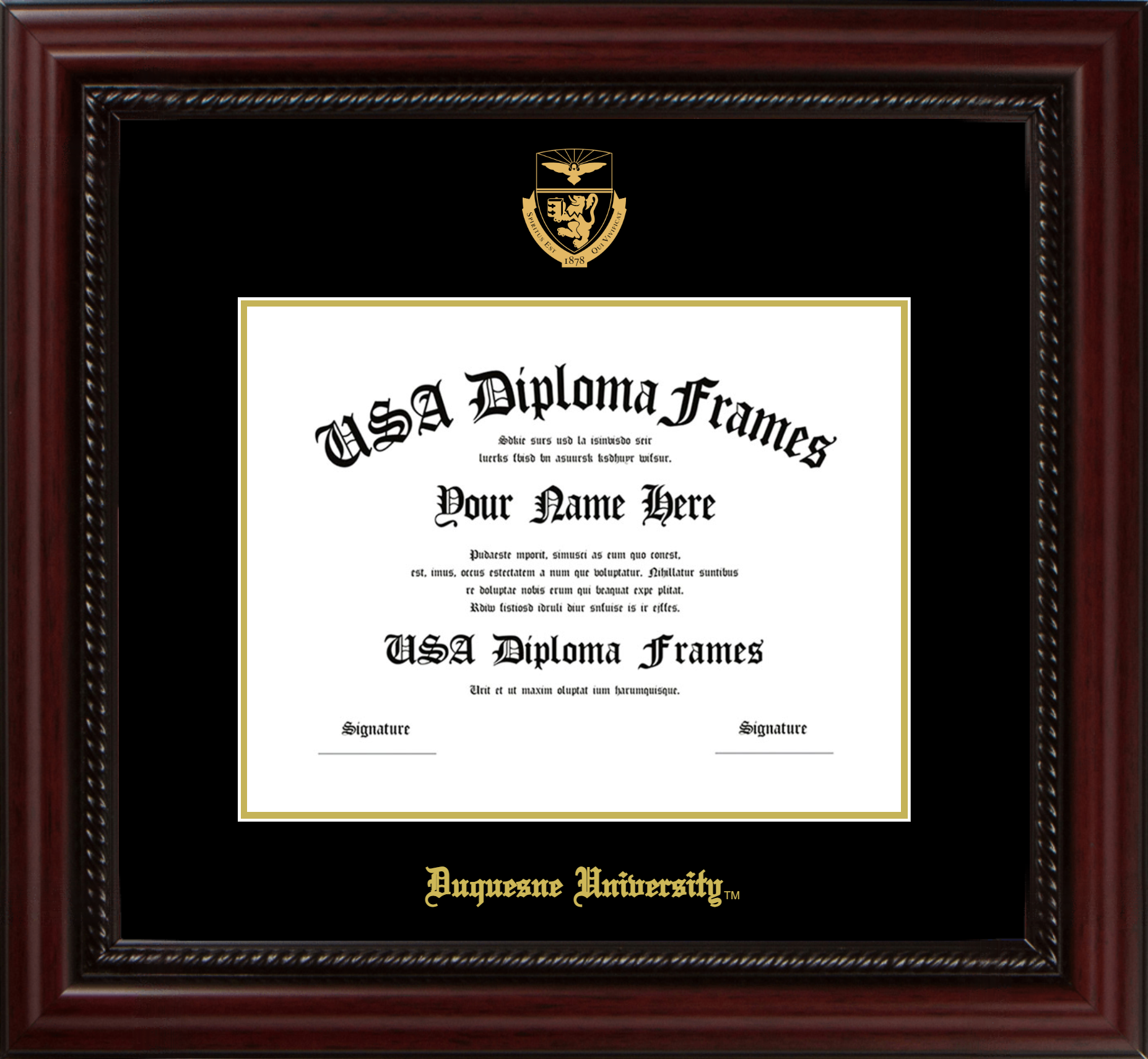 Duquesne University – Single Horizontal Document ( Bachelors/Masters ) – Executive Cherry Rope – Black Mat – Gold Accent Mat – With Seal(University Seal Gold) – With Gold Embossing (Duquesne University)