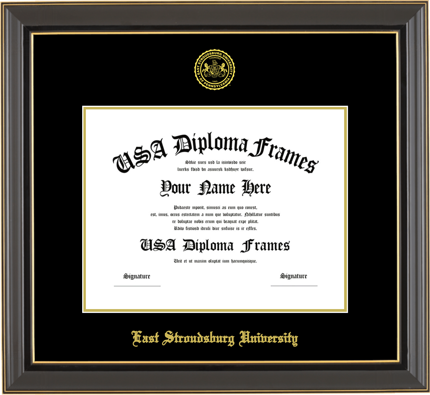 East Stroudsburg University of Pennsylvania – Single Horizontal Document ( 8 1/2″x11″ ) – Black Gold Trim Glossy – Black Mat – Gold Accent Mat – With Seal(University Seal Gold) – With Gold Embossing (East Stroudsburg University)