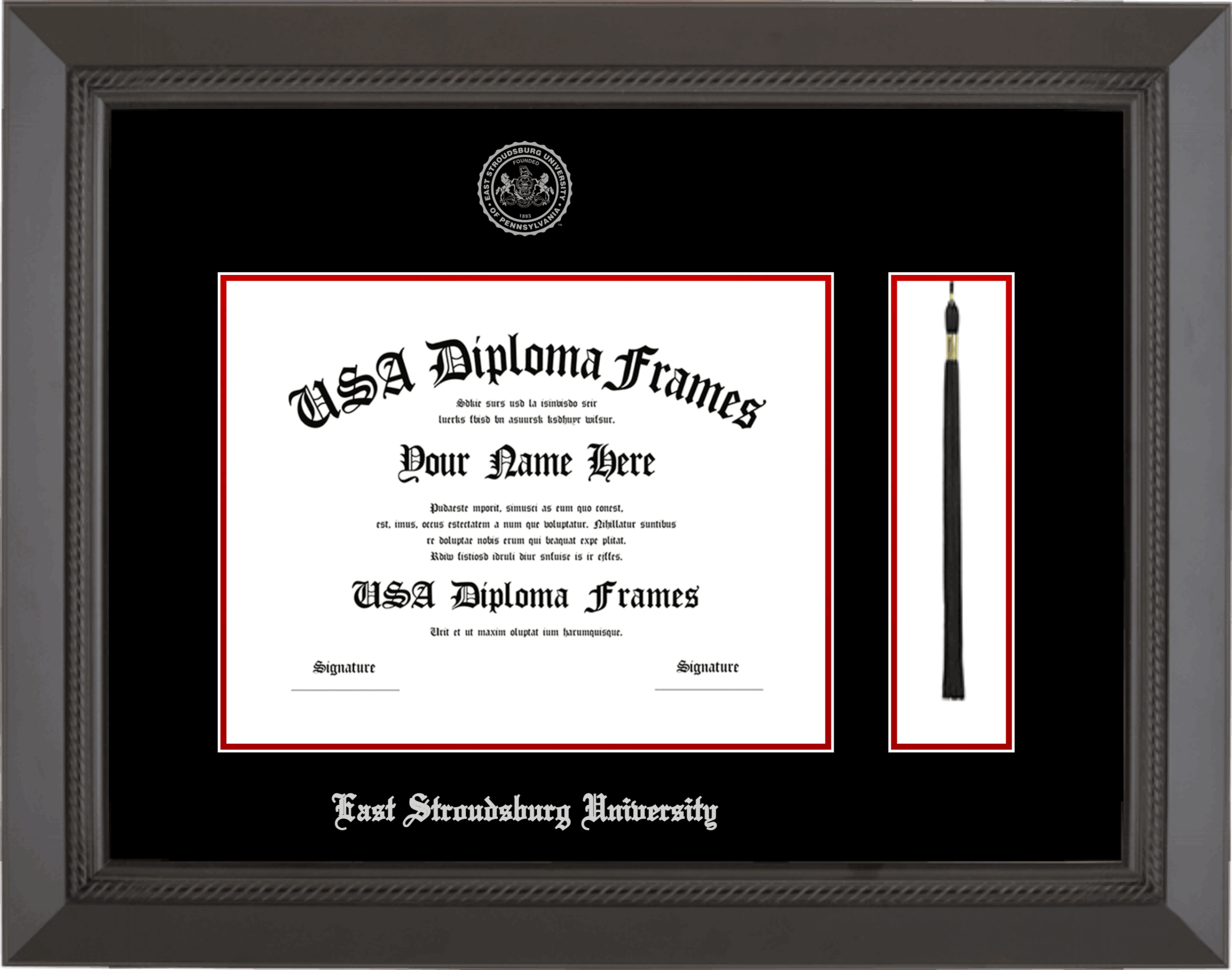 East Stroudsburg University of Pennsylvania Diploma Frame with Tassel – Black Rope – Black and Red Mat – Silver Seal