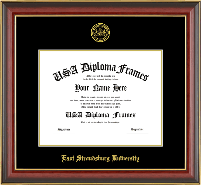 Want to explore more styles? Browse our full range of diploma frame layouts, or visit the East Stroudsburg University of Pennsylvania to view options available for your school. Looking for a fully personalized design? Try our custom Frame Builder and create a frame that’s uniquely yours.