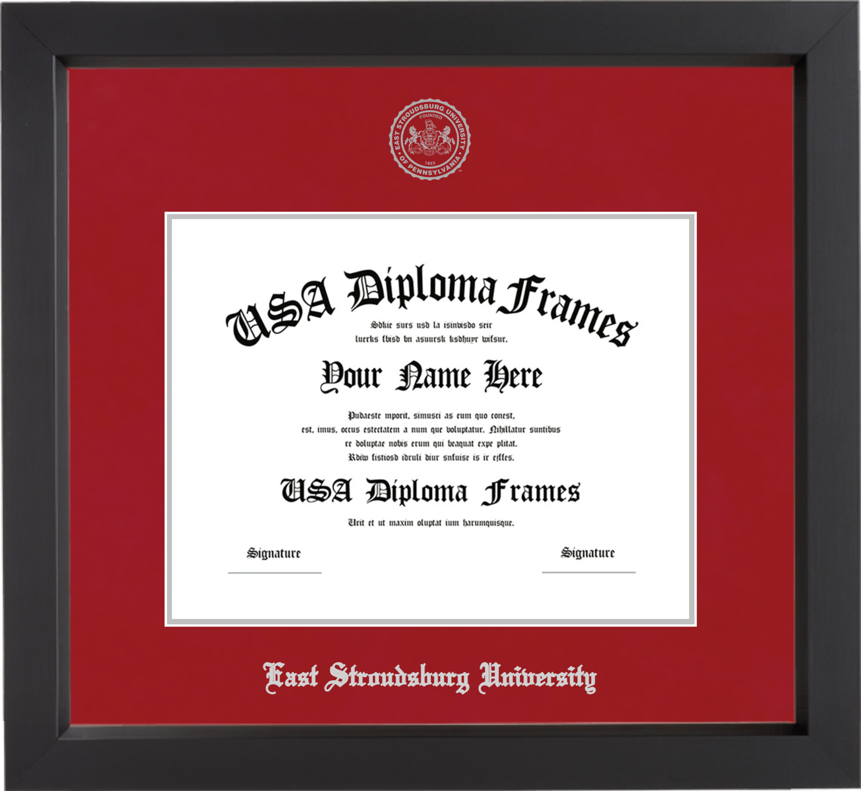 East Stroudsburg University of Pennsylvania – Single Horizontal Document ( Diploma ) – Black Matte – Crimson Mat – Silver Accent Mat – With Seal(University Seal Silver) – With Silver Embossing (East Stroudsburg University)