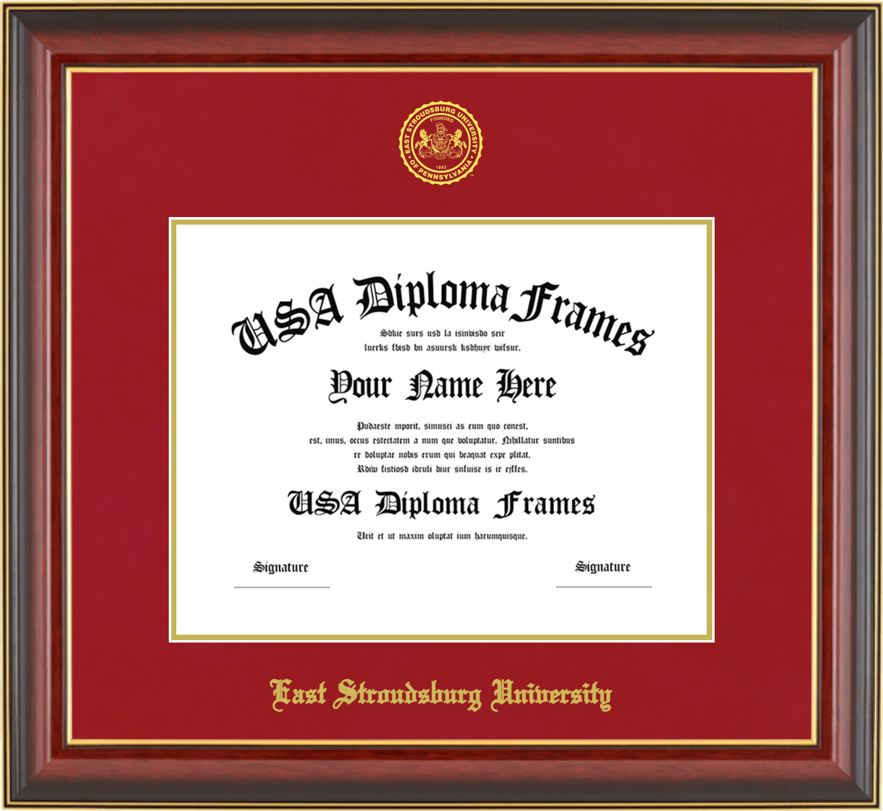 East Stroudsburg University of Pennsylvania – Single Horizontal Document ( Diploma ) – Cherry Mahogany Gold Trim Glossy – Crimson Mat – Gold Accent Mat – With Seal(University Seal Gold) – With Gold Embossing (East Stroudsburg University)