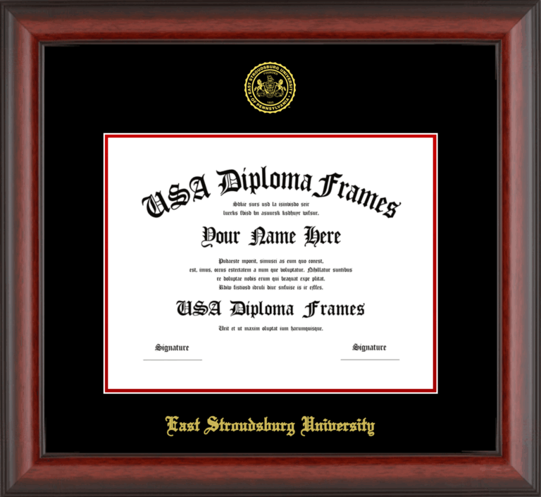 Want to explore more styles? Browse our full range of diploma frame layouts, or visit the East Stroudsburg University of Pennsylvania to view options available for your school. Looking for a fully personalized design? Try our custom Frame Builder and create a frame that’s uniquely yours.