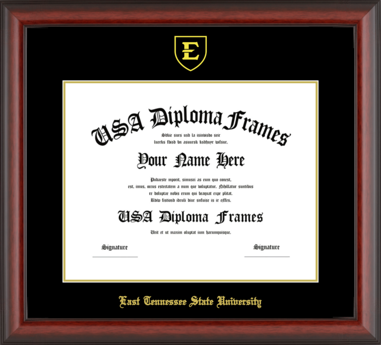 East Tennessee State University Diploma Frame – Cherry Mahogany Matte – Black and Gold Mat