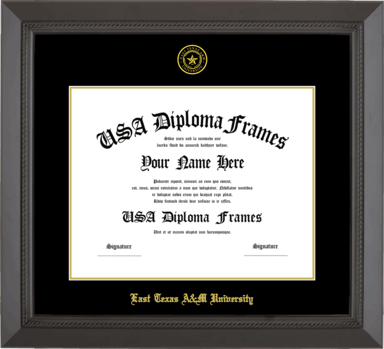 East Texas A&M University Diploma Frame – Black Rope – Black and Gold Mat