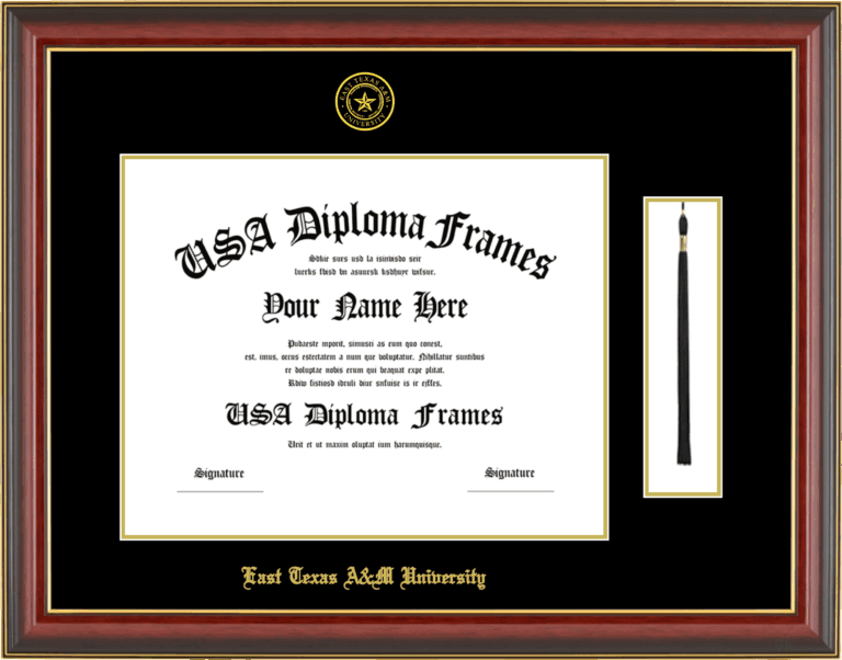 Want to explore more styles? Browse our full range of diploma frame layouts, or visit the East Texas A&M University to view options available for your school. Looking for a fully personalized design? Try our custom Frame Builder and create a frame that’s uniquely yours.