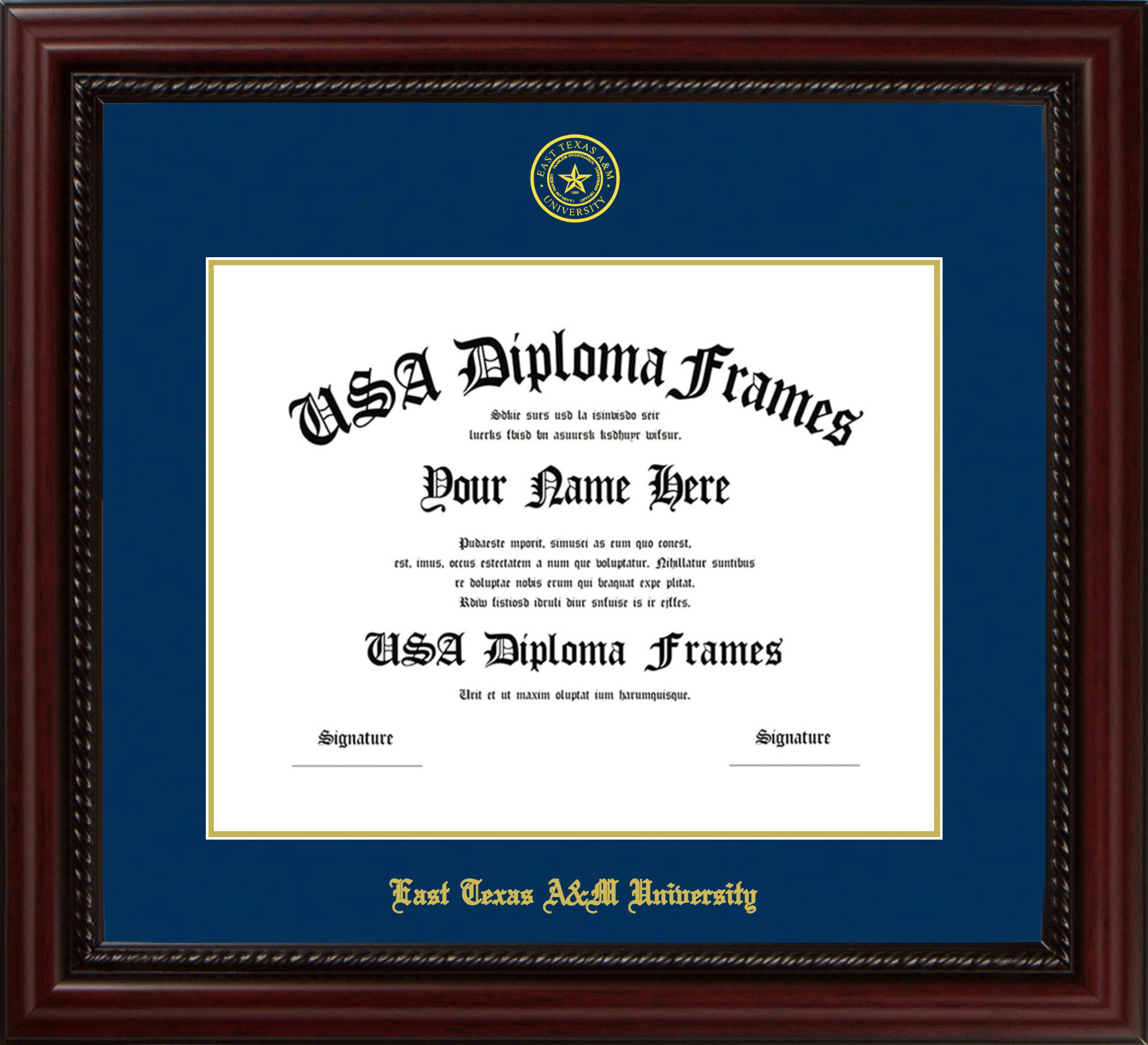 East Texas A&M University Diploma Frame – Executive Cherry Rope – Navy and Gold Mat