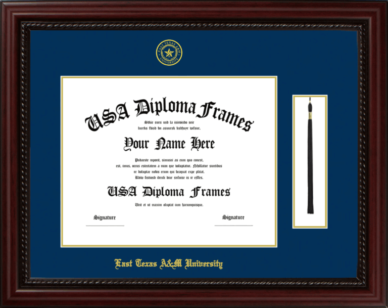 Want to explore more styles? Browse our full range of diploma frame layouts, or visit the East Texas A&M University to view options available for your school. Looking for a fully personalized design? Try our custom Frame Builder and create a frame that’s uniquely yours.