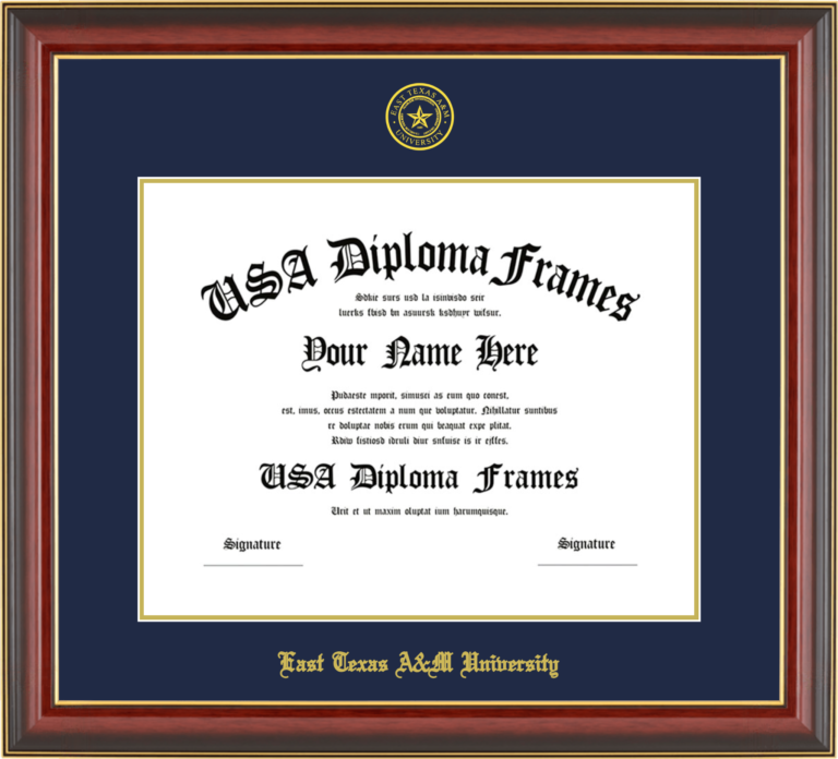Want to explore more styles? Browse our full range of diploma frame layouts, or visit the East Texas A&M University to view options available for your school. Looking for a fully personalized design? Try our custom Frame Builder and create a frame that’s uniquely yours.