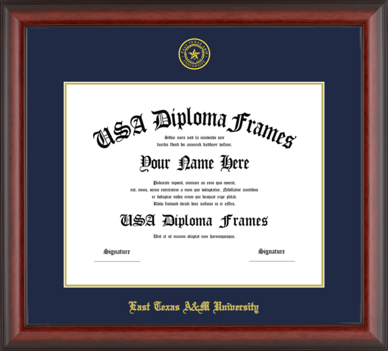 Want to explore more styles? Browse our full range of diploma frame layouts, or visit the East Texas A&M University to view options available for your school. Looking for a fully personalized design? Try our custom Frame Builder and create a frame that’s uniquely yours.