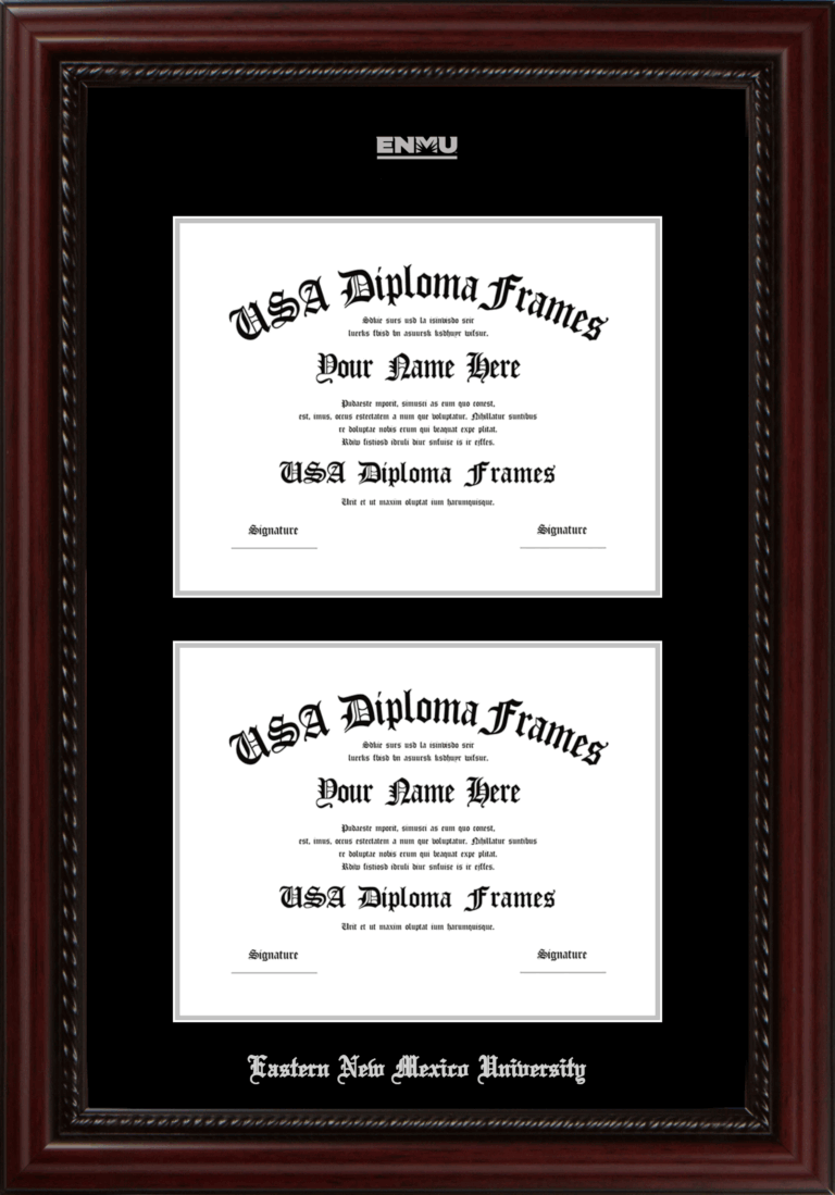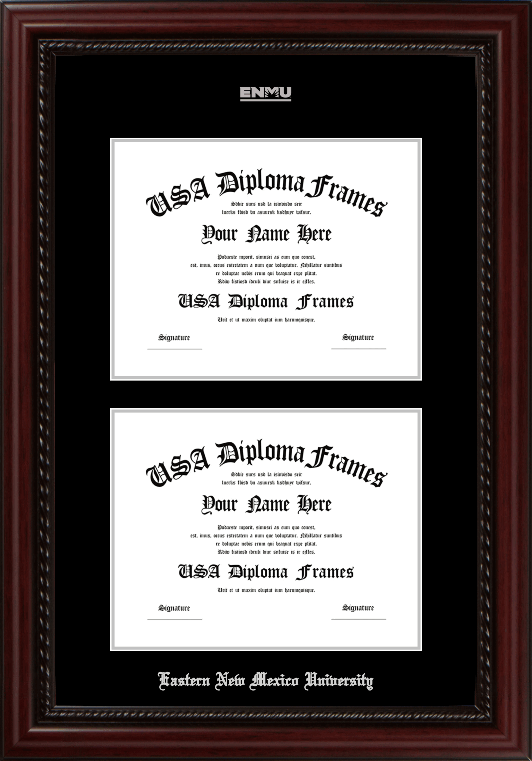 Eastern New Mexico University Double Diploma Frame- Executive Cherry Rope – Black and Silver Mat