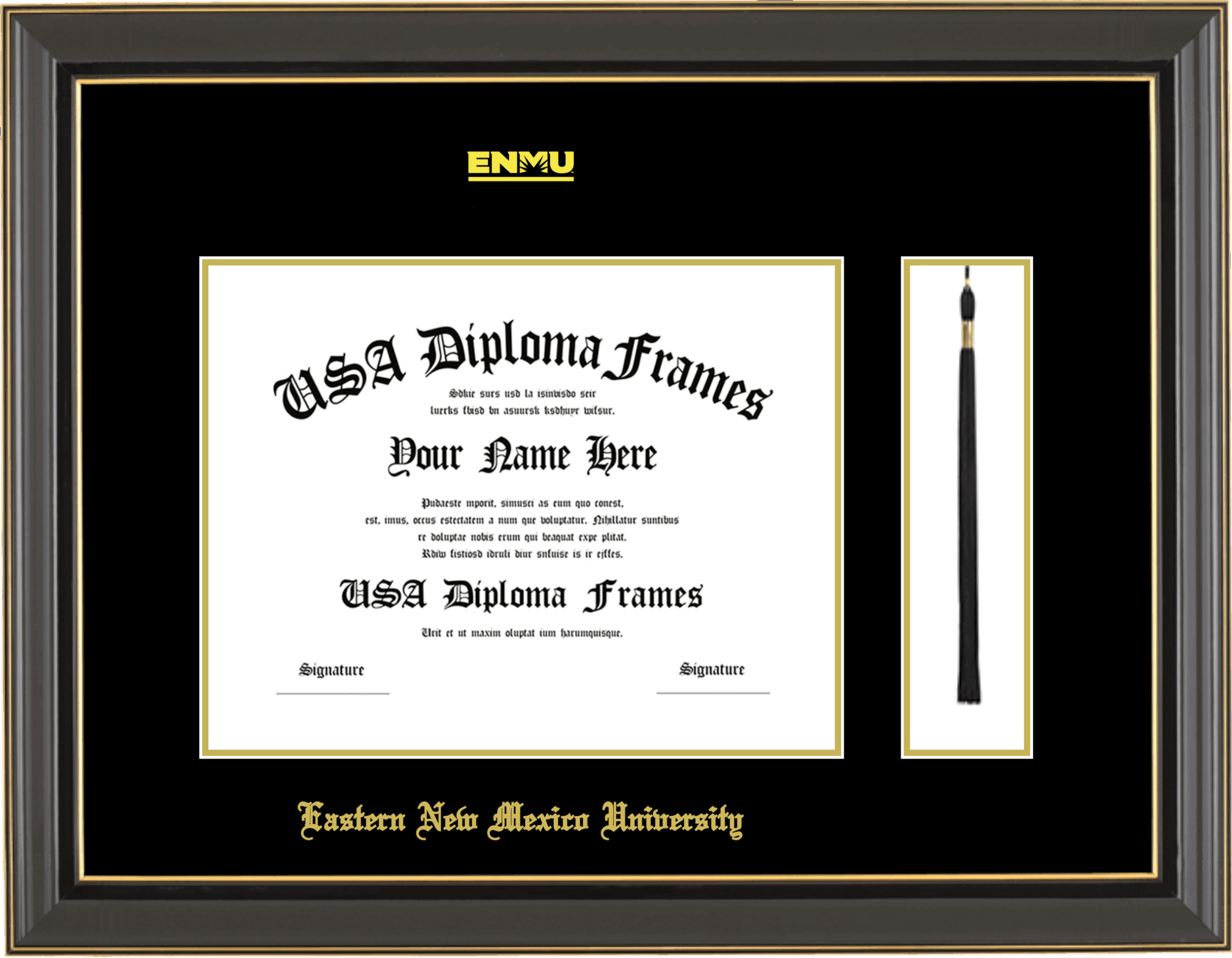 Eastern New Mexico University Diploma Frame with Tassel – Black Gold Trim Glossy – Black and Gold Mat