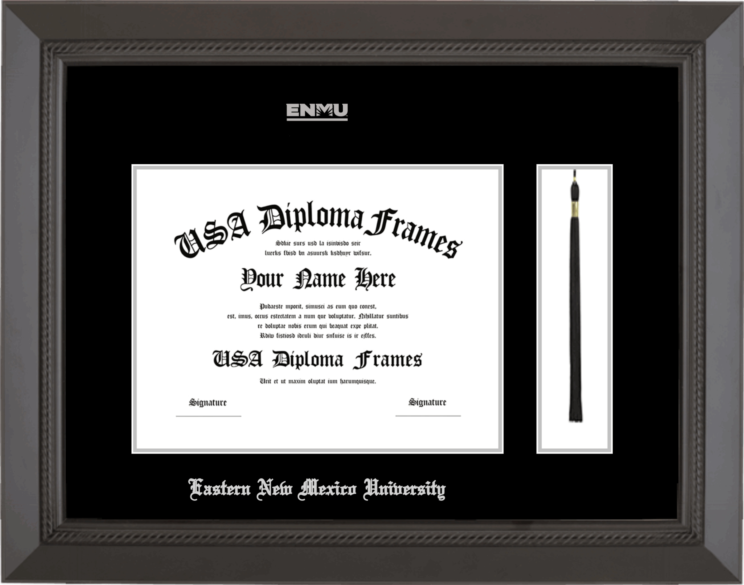 Eastern New Mexico University Diploma Frame with Tassel – Black Rope – Black and Silver Mat