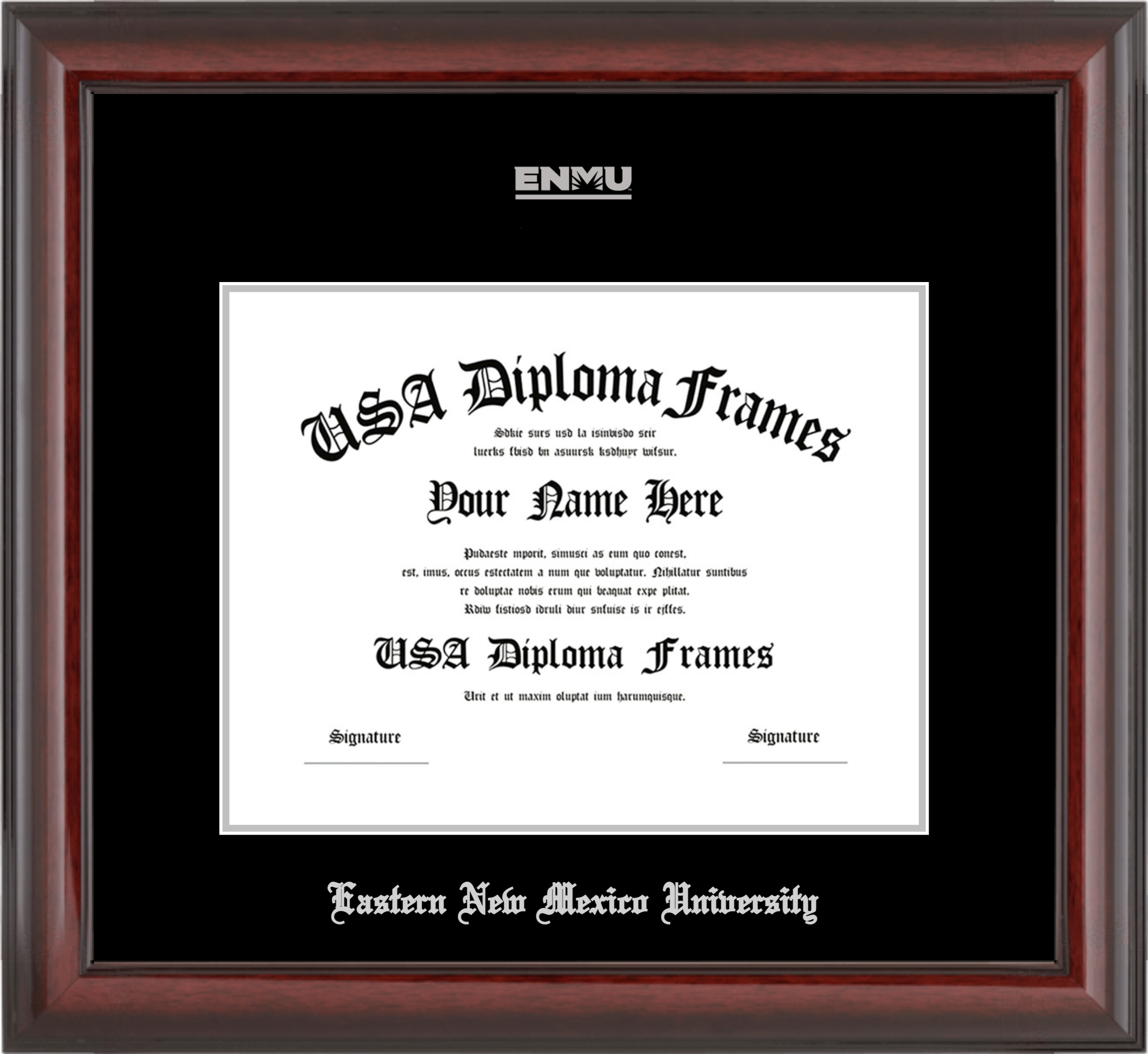 Eastern New Mexico University Diploma Frame – Cherry Mahogany Glossy – Black and Silver Mat