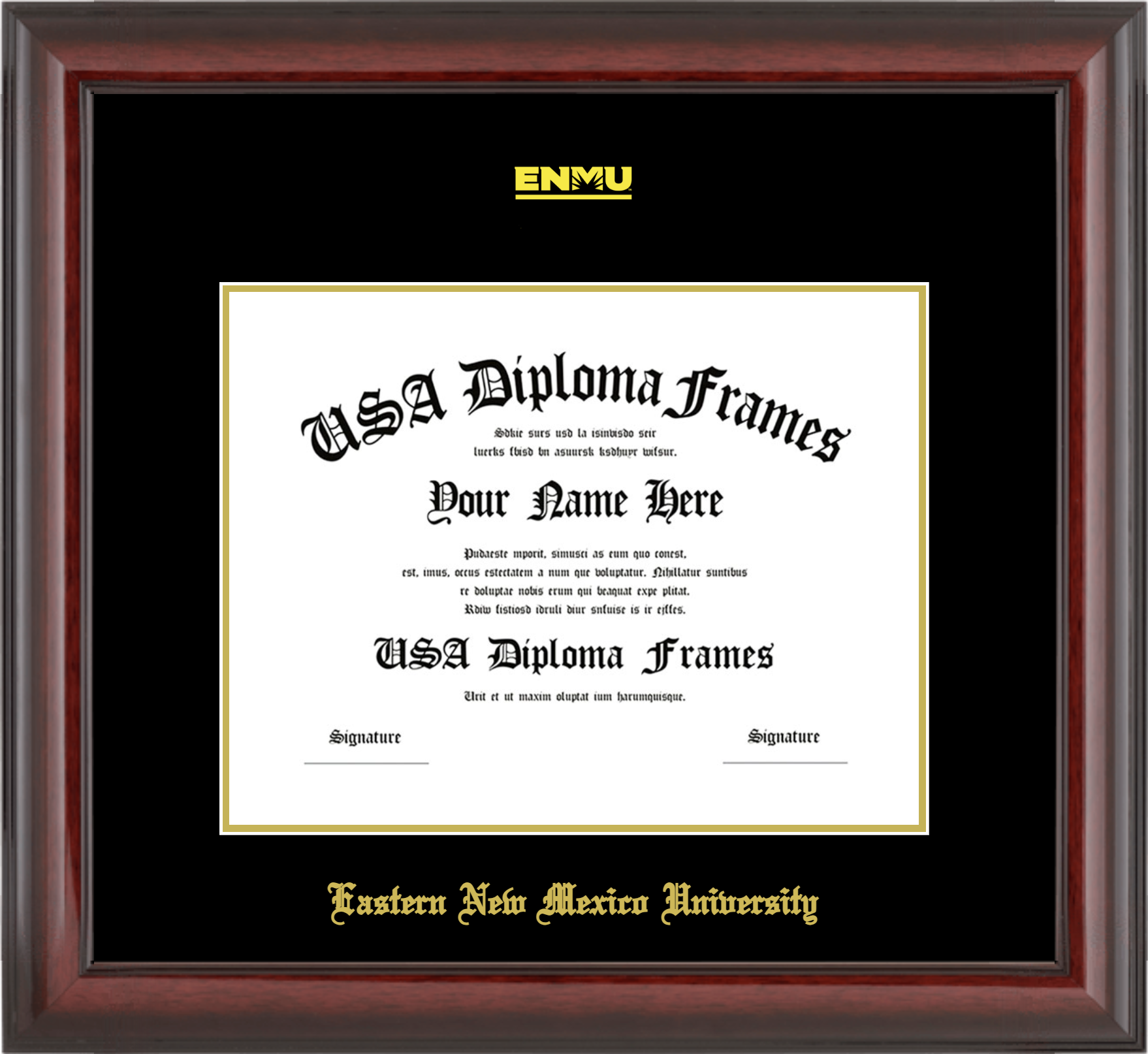 Eastern New Mexico University Diploma Frame – ENMU – Cherry Mahogany Glossy – Black and Gold Mat