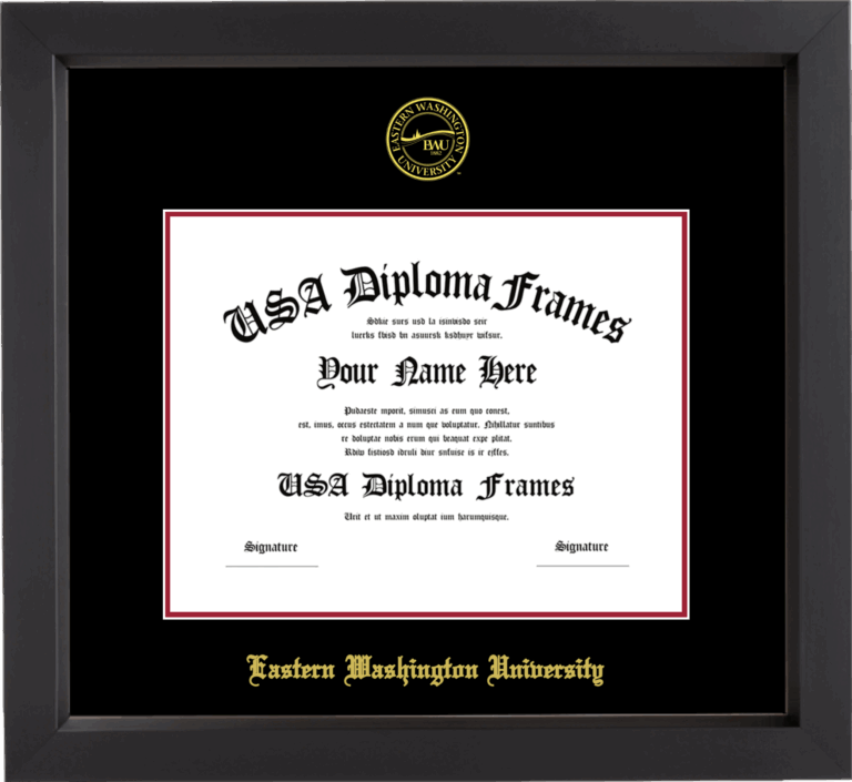 Want to explore more styles? Browse our full range of diploma frame layouts, or visit the Eastern Washington University to view options available for your school. Looking for a fully personalized design? Try our custom Frame Builder and create a frame that’s uniquely yours.
