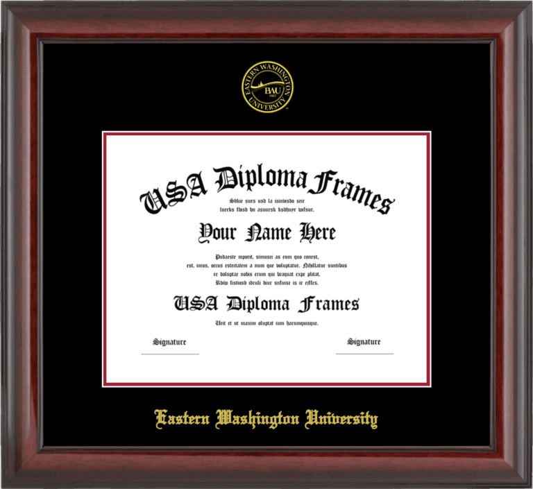 Want to explore more styles? Browse our full range of diploma frame layouts, or visit the Eastern Washington University to view options available for your school. Looking for a fully personalized design? Try our custom Frame Builder and create a frame that’s uniquely yours.
