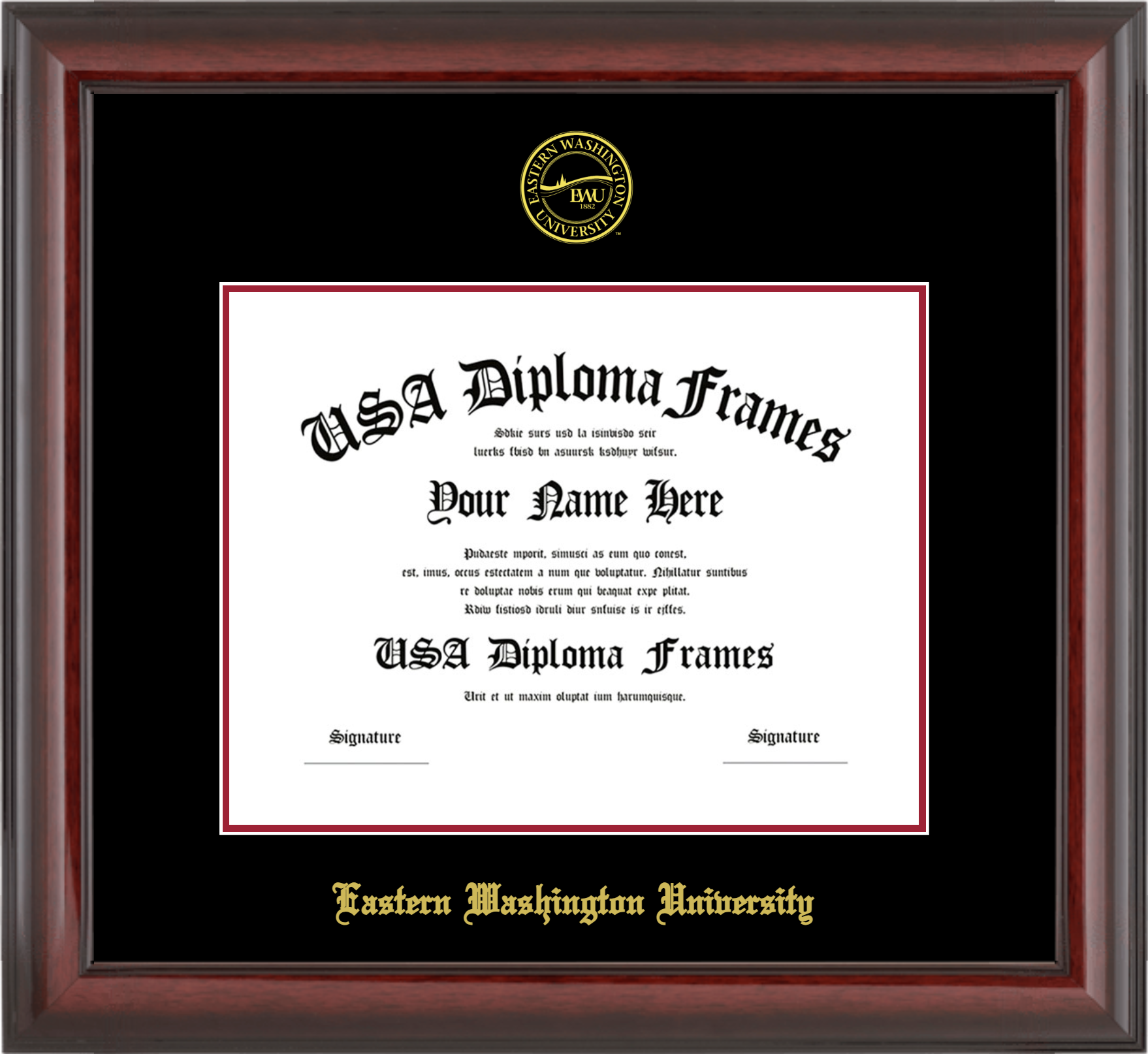 Eastern Washington University Diploma Frame – Cherry Mahogany Glossy – Black and Crimson Mat