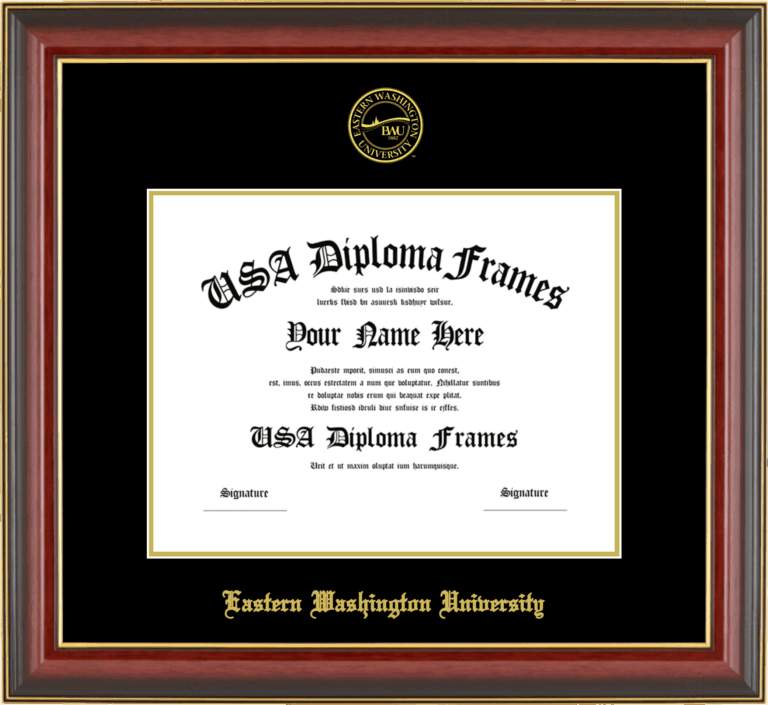Eastern Washington University Diploma Frame – Cherry Mahogany Gold Trim Glossy – Black and Gold Mat