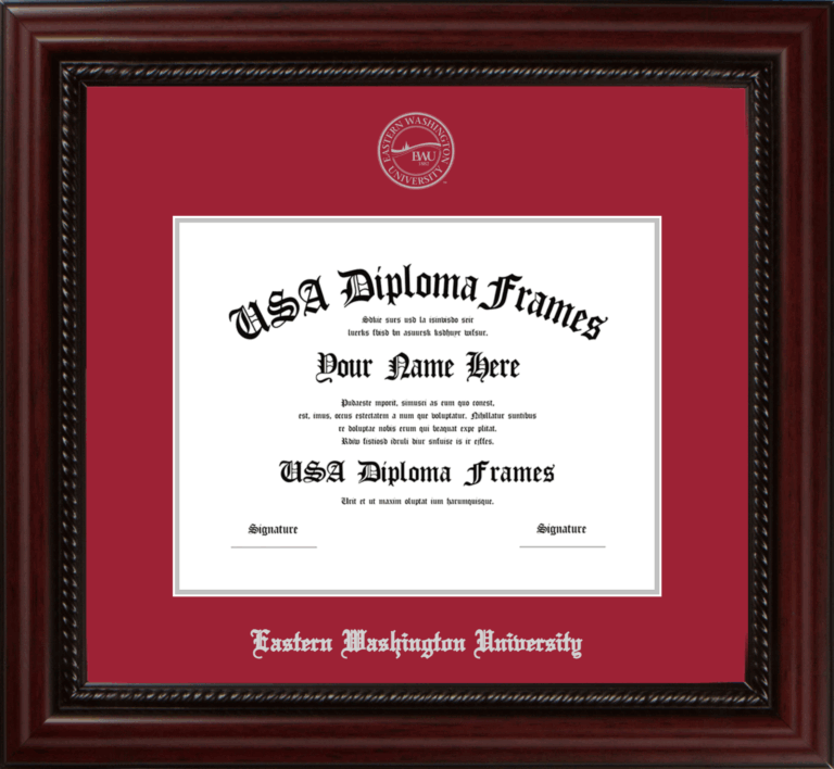 Want to explore more styles? Browse our full range of diploma frame layouts, or visit the Eastern Washington University to view options available for your school. Looking for a fully personalized design? Try our custom Frame Builder and create a frame that’s uniquely yours.