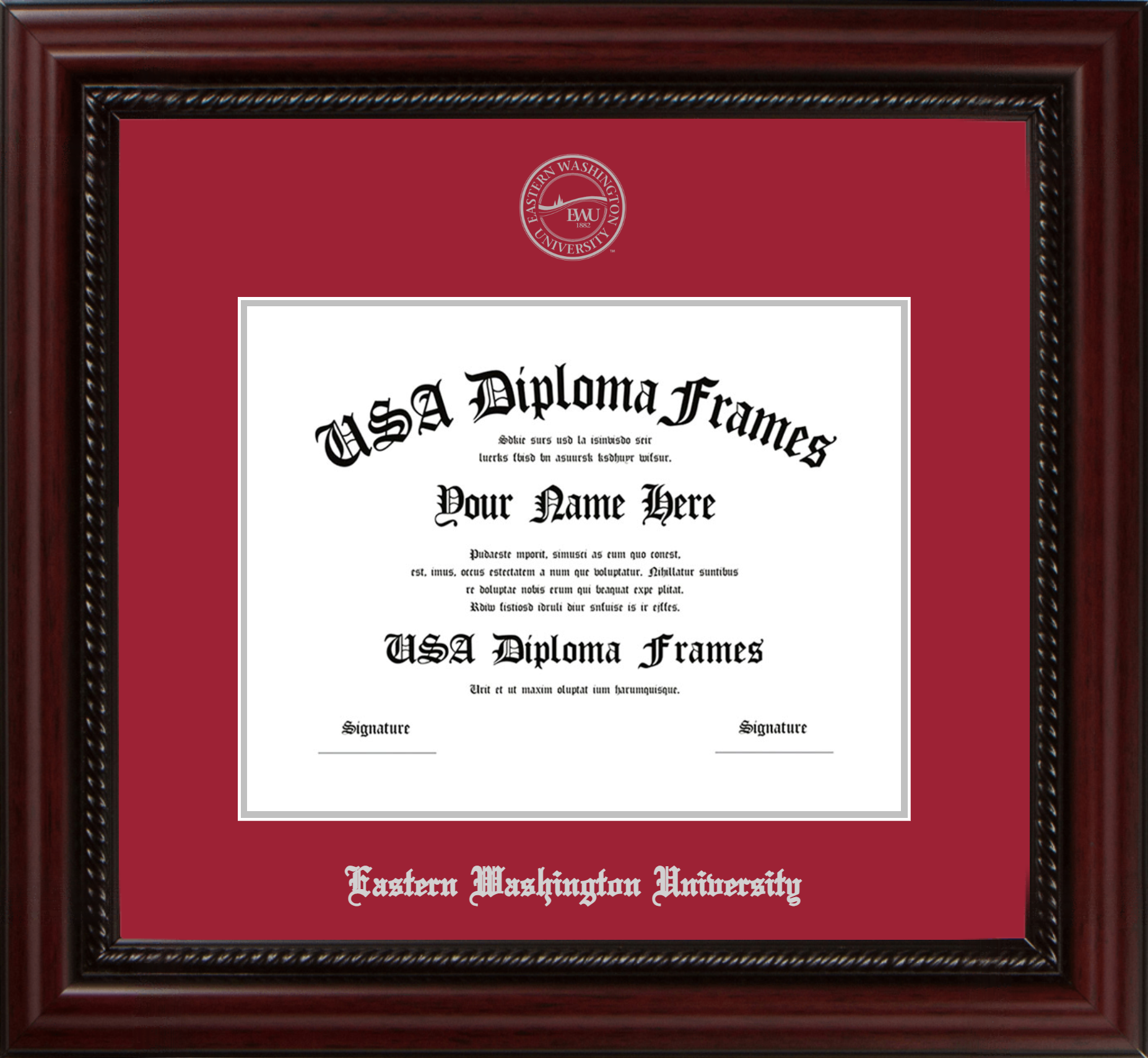 Eastern Washington University Diploma Frame – Executive Cherry Rope – Crimson and Silver Mat