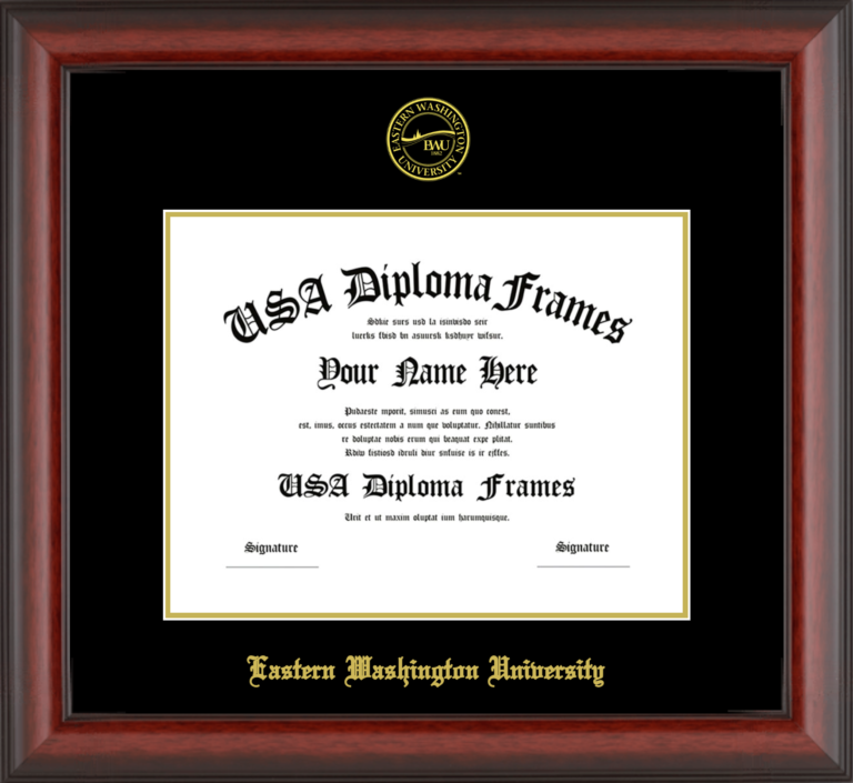 Want to explore more styles? Browse our full range of diploma frame layouts, or visit the Eastern Washington University to view options available for your school. Looking for a fully personalized design? Try our custom Frame Builder and create a frame that’s uniquely yours.
