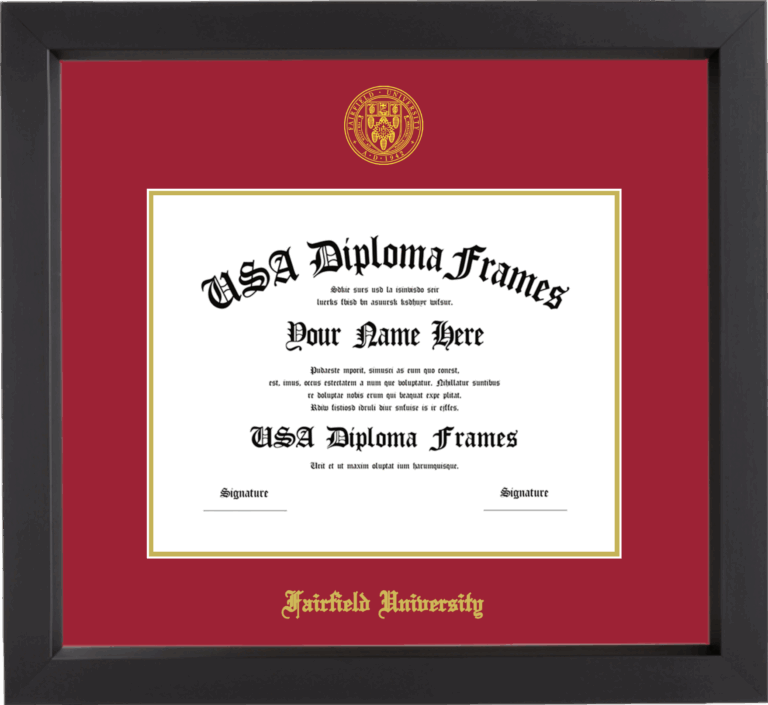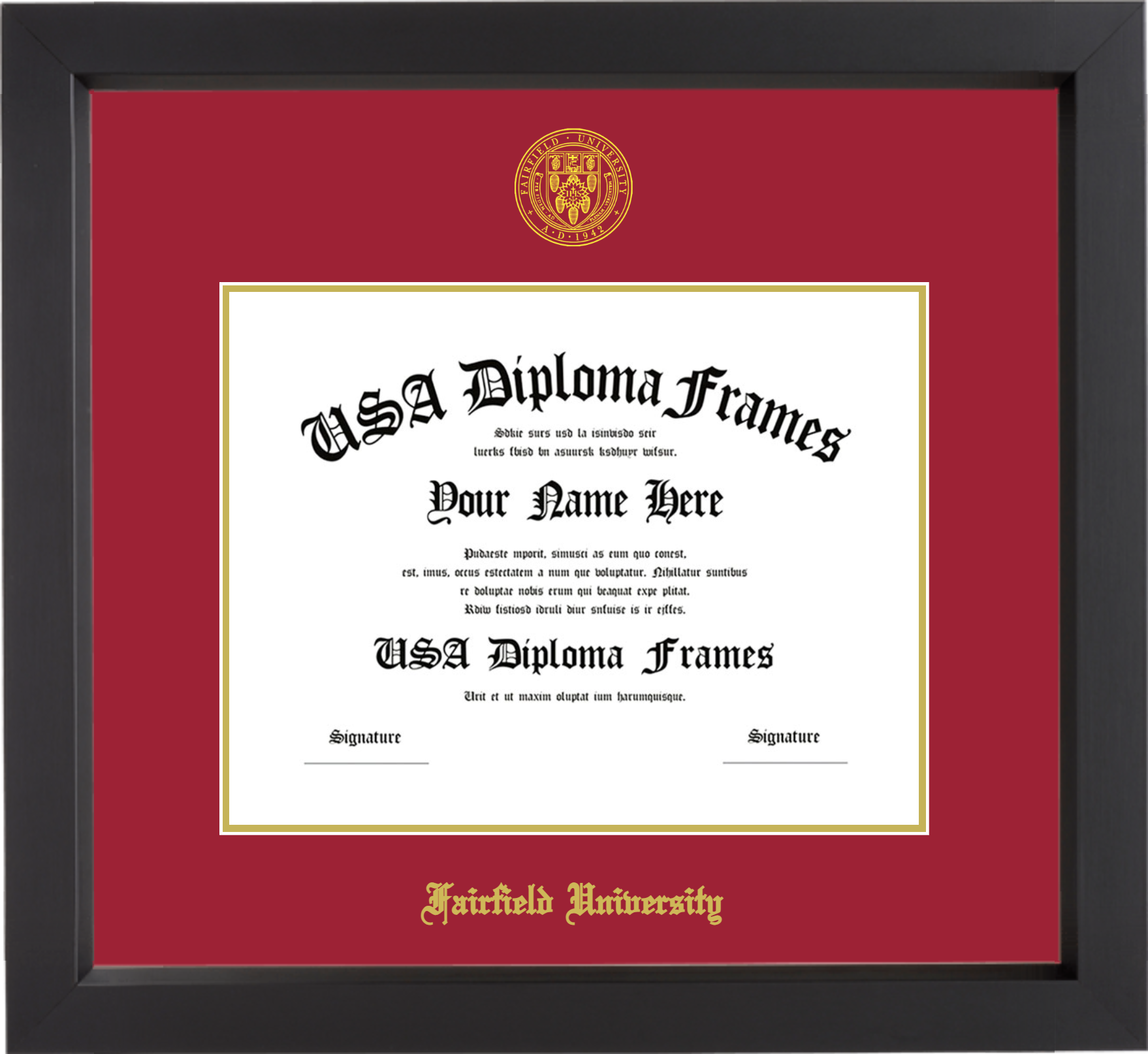 Fairfield University Diploma Frame – Black Matte – Crimson and Gold Mat