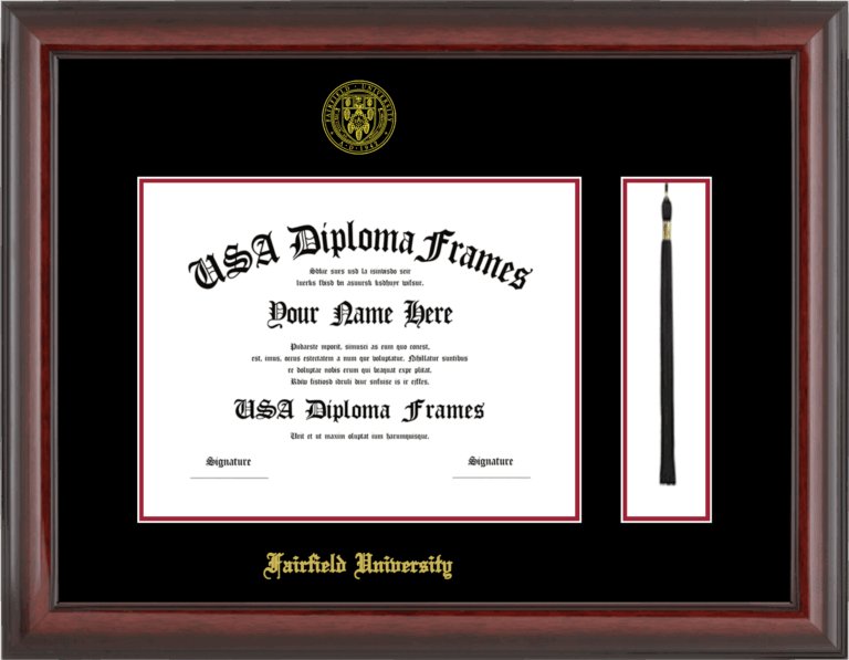 Fairfield University Diploma Frame with Tassel – Cherry Mahogany Glossy – Black and Crimson Mat