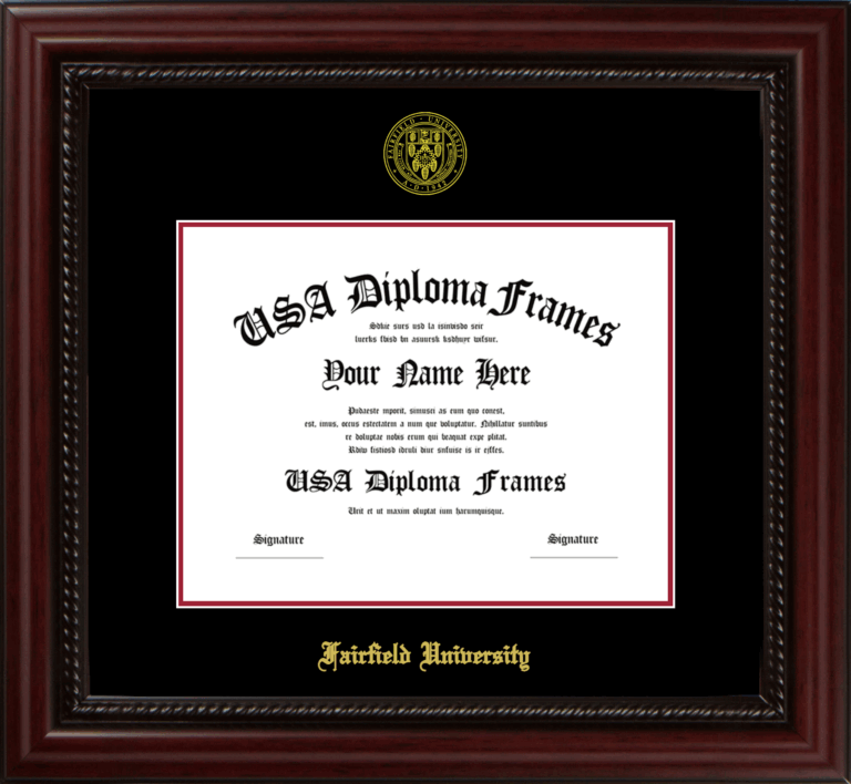 Fairfield University Diploma Frame – Executive Cherry Rope – Black and Crimson Mat