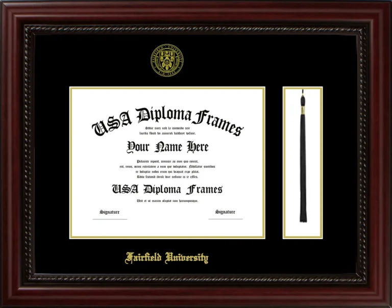 Fairfield University Diploma Frame with Tassel – Executive Cherry Rope – Black and Gold Mat